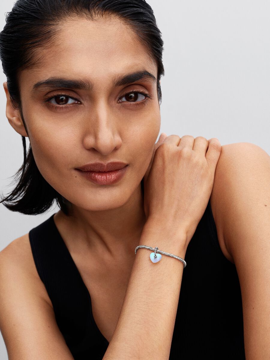 Un cuore di vetro iridescente pietra di luna incontra una stella cadente. Il charm in Argento Sterling 925 con zirconia cubica incolore simboleggia sogni, speranze e infinite possibilità. Indossalo da solo o con altri gioielli ricchi di significato.