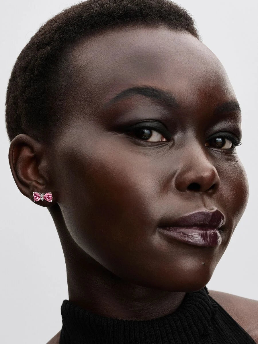 Pandora Dark Pink Crystal Hoop Earrings 925 Sterling Silver 293851C02