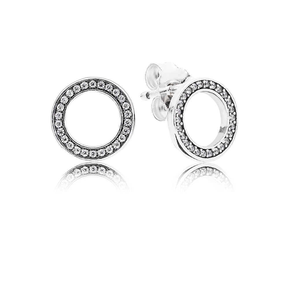 Pandora circular stud earrings, made of 925 sterling silver and cubic zirconia.