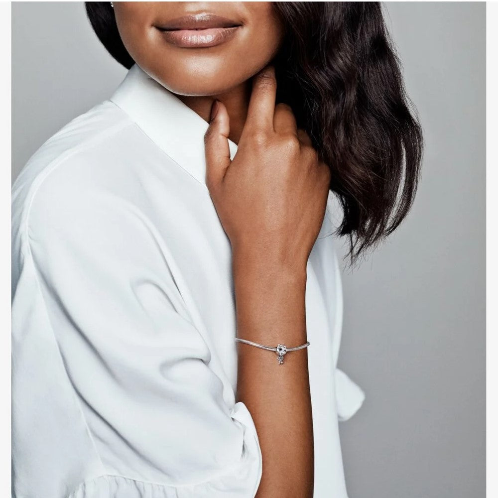 Ti presentiamo una nuova amica, decisamente originale: la Bambina scheletro. Un charm a tema Halloween decorato da cuori, rifinito a mano e realizzato in Argento Sterling 925. Innamorati di questa graziosa bambina scheletro caratterizzata da testa intagliata sormontata da un fiocco, occhi a forma di cuore e un cuore rovesciato al posto del naso. Il charm, che comprende anche un cuore che collega la parte superiore e inferiore dello scheletro, è più dolce che spaventoso.