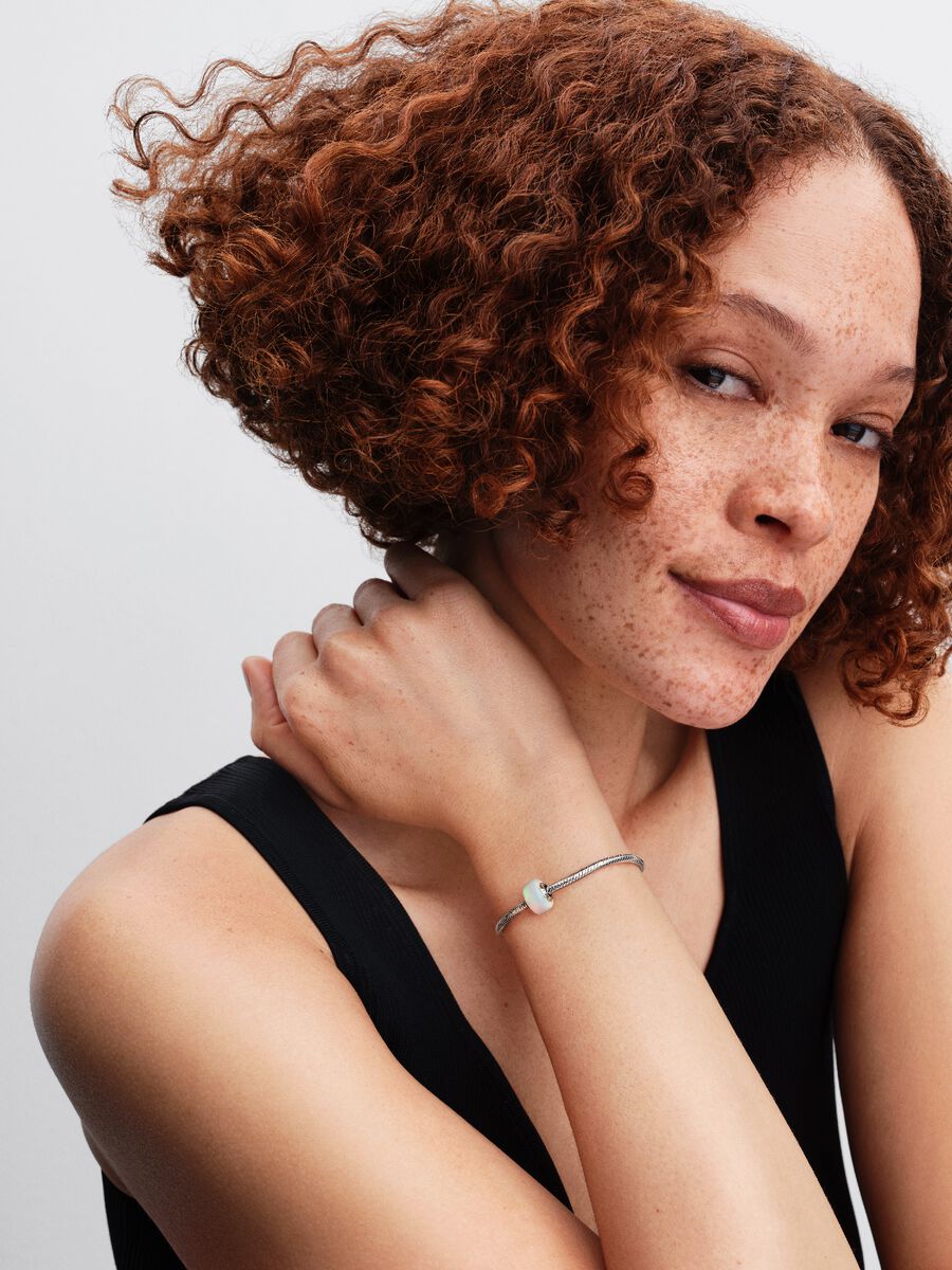 Risplendi fino alle stelle. In Argento Sterling 925 e resina opalina coltivata in laboratorio, il charm simboleggia unione, trasformazione e il mistero del cosmo. Indossalo da solo o abbinato per un look celestiale.