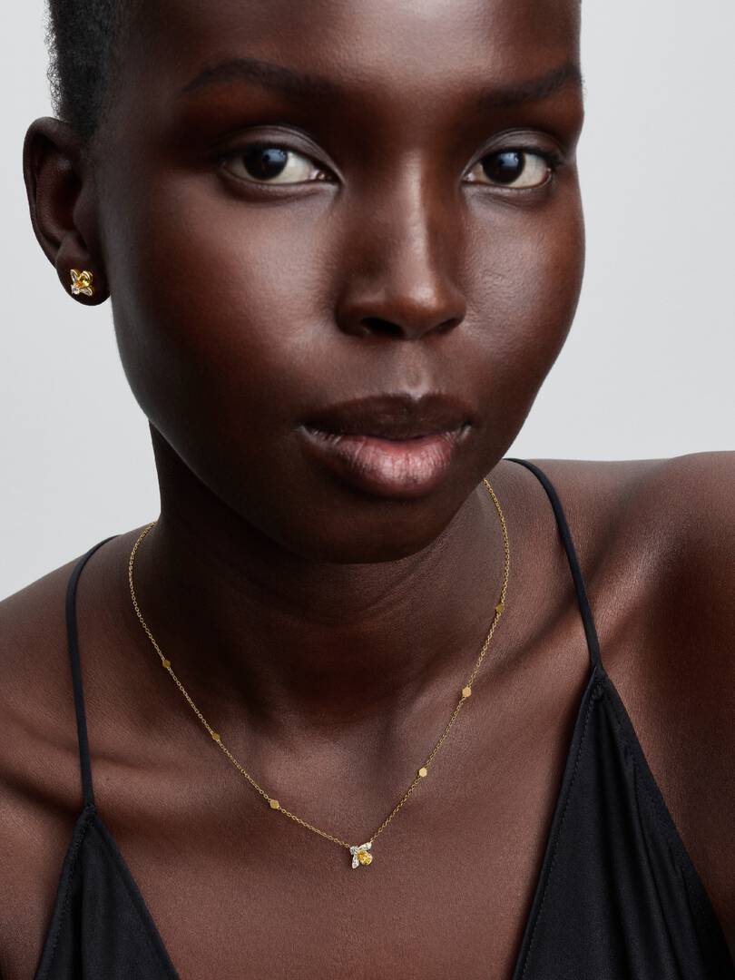 Fai risplendere il tuo look. Questa collana rifinita in oro presenta una vivace ape decorata con pietre di zirconia cubica, fissata a una catena con dettagli a nido d’ape. Un gioiello delicato e luminoso, perfetto per un’ape regina.