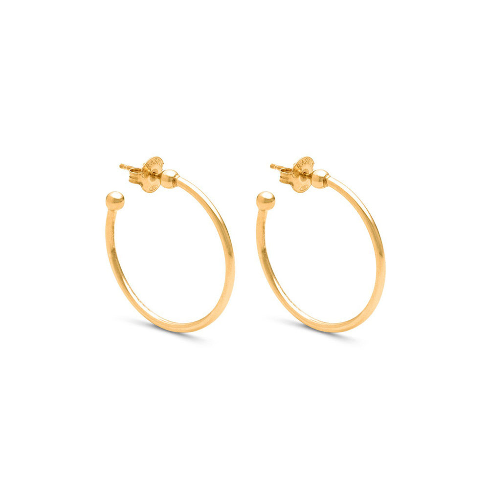 Dal design moderno e senza tempo, questi orecchini in argento dorato celebrano la purezza del cerchio e la raffinatezza dei dettagli artigianali. Le due sferette alle estremità creano un gioco di equilibrio ed eleganza. Interamente fatti a mano in azienda.
