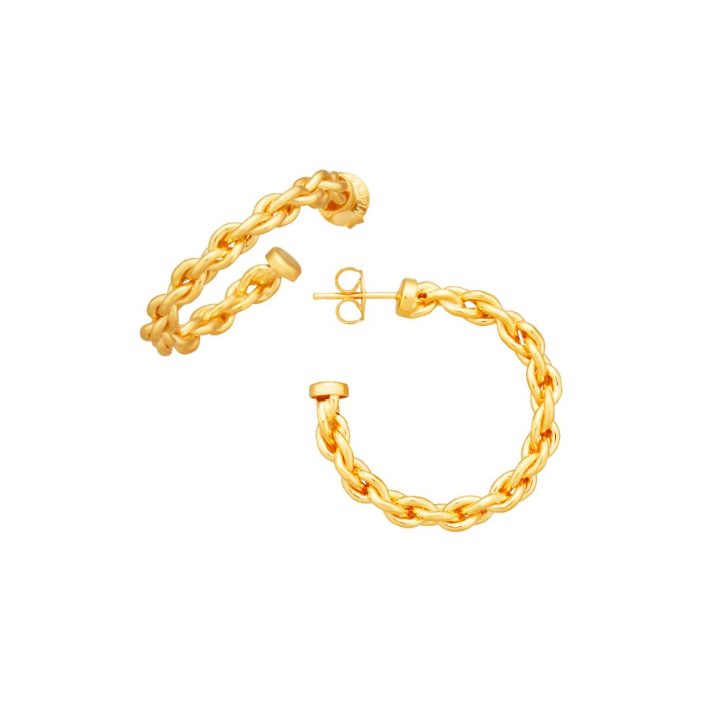 Per una donna che ama la bellezza dell'unicità, Giovanni Raspini propone questi eleganti orecchini a cerchio in argento dorato fuso a cera persa. La forma di questi orecchini si ispira ad una catena classica, ma con effetto rigido. Fatti a mano in azienda. Per una donna che ama la bellezza della semplicità.