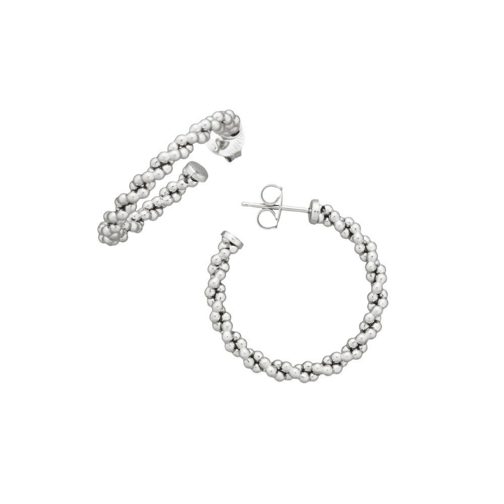 Per una donna che ama la bellezza dell'unicità, Giovanni Raspini propone questi eleganti orecchini a cerchio in argento fuso a cera persa che raffigurano una catena intrecciata, con effetto rigido. Fatti a mano in azienda.