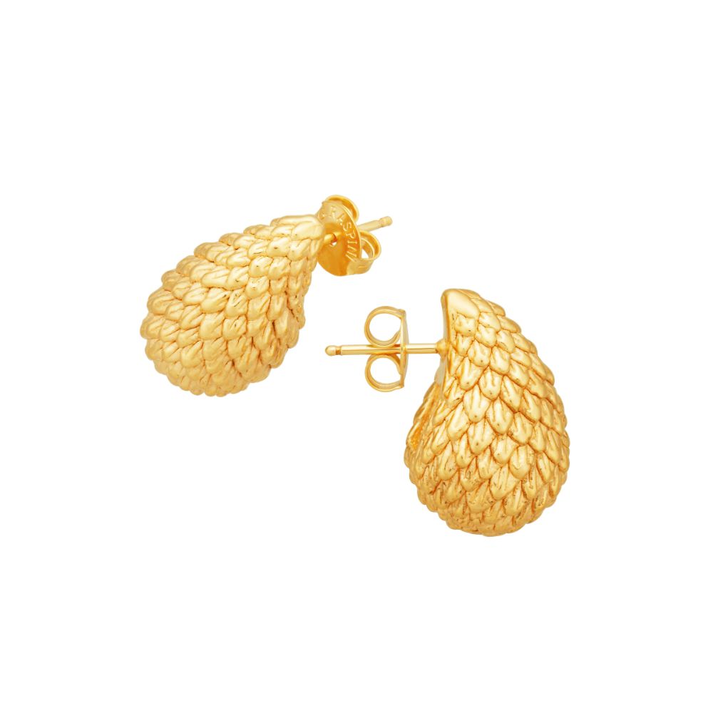 Con questi orecchini in argento dorato, di grande eleganza e leggerezza, Giovanni Raspini esplora il tema della goccia, decorata con la texture di serpente. Eleganti e versatili, sono realizzati completamente a mano in azienda.