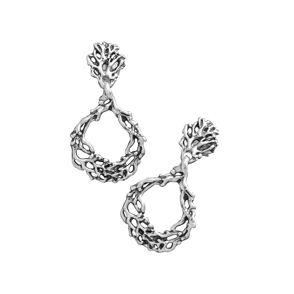 Iconici ed elegantissimi: questi orecchini a pendente sviluppano l'ispirazione marina di Giovanni Raspini grazie ad uno stile assolutamente contemporaneo. Realizzati in argento brunito, completamente a mano in house.