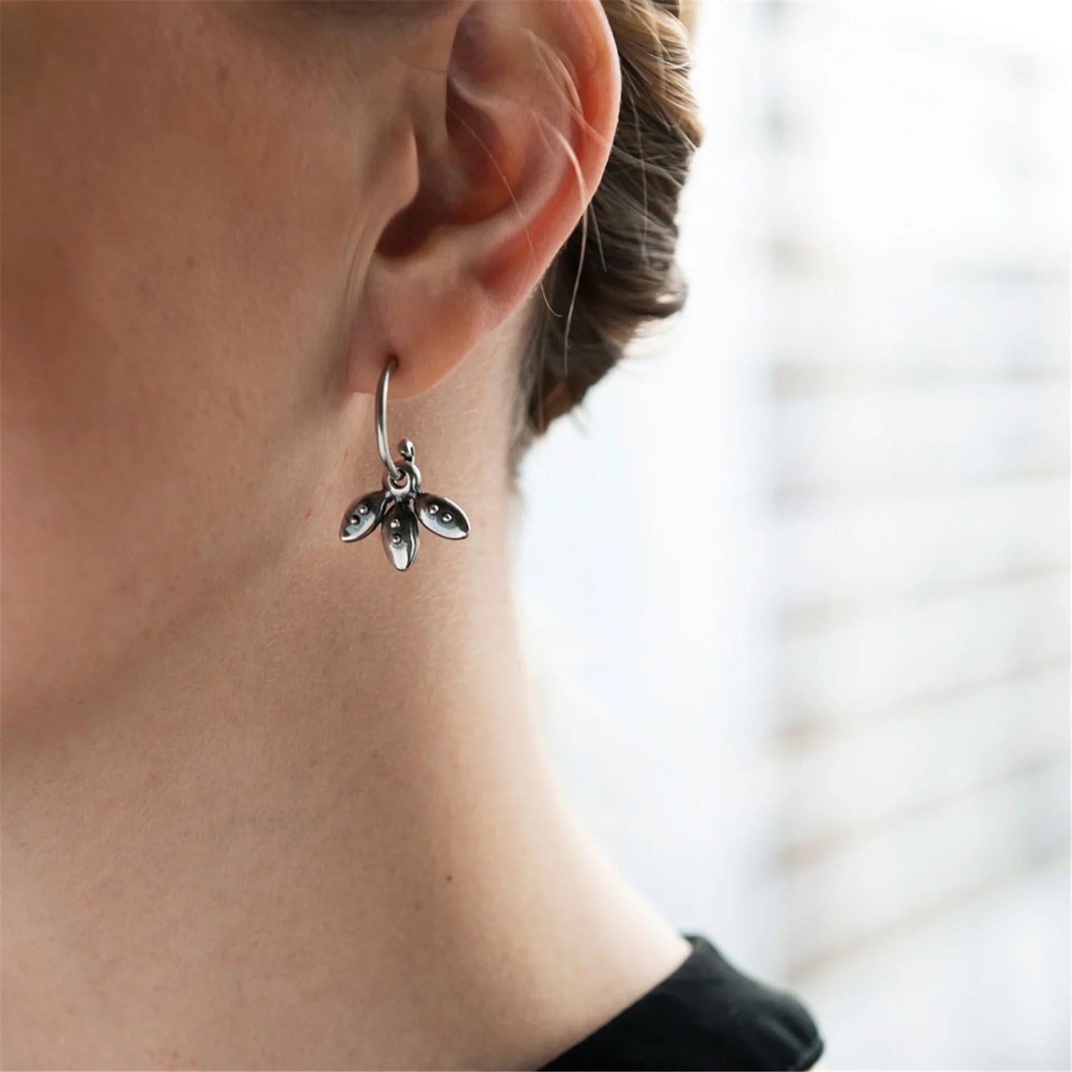 Questa composizione è realizzata utilizzando gli Orecchini a Cerchio con Bocciolo e gli Orecchini Petali, entrambi in argento 925.