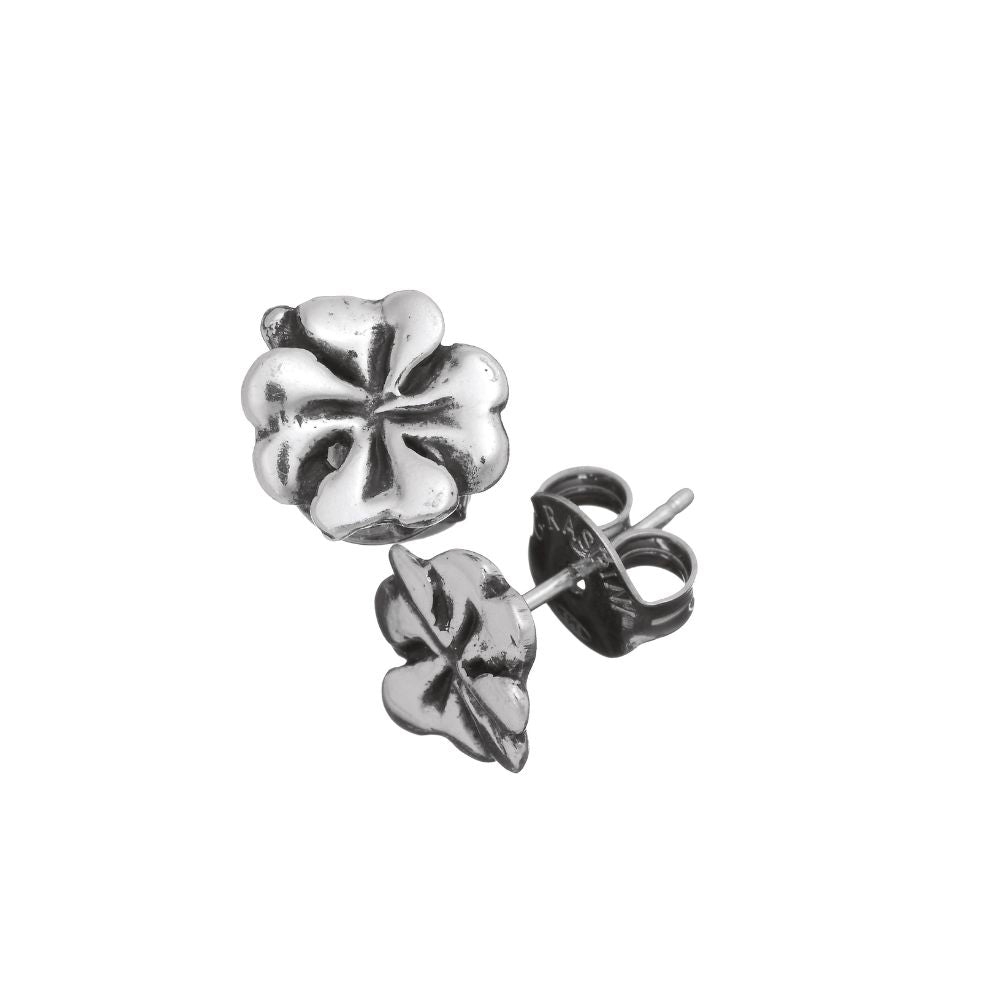 Bellezza e tanta fortuna con gli orecchini Mini Quadrifoglio. Un piccolo capolavoro in argento brunito, fatto completamente a mano in azienda. Un simbolo semplice che racconta mille storie di donne, un gioiello delicato da indossare ad ogni ora del giorno.