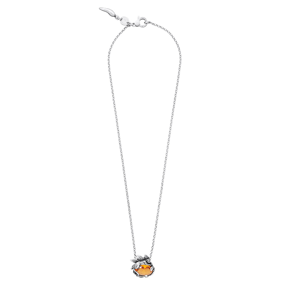 Incastonato da un prezioso leopardo in argento, realizzato a cera persa, un grande quarzo color citrino , illumina ed impreziosisce questo elegante pendente. L'argento brunito è lavorato a mano con fusione a cera persa. Il gioiello è agganciato ad una catena mini-rolò diamantata.